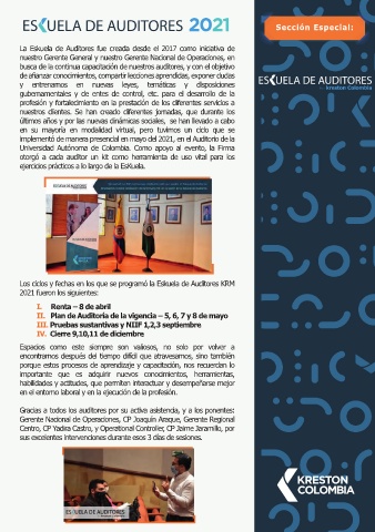 Los ciclos y fechas en los que se programó la Eskuela de Auditores KRM